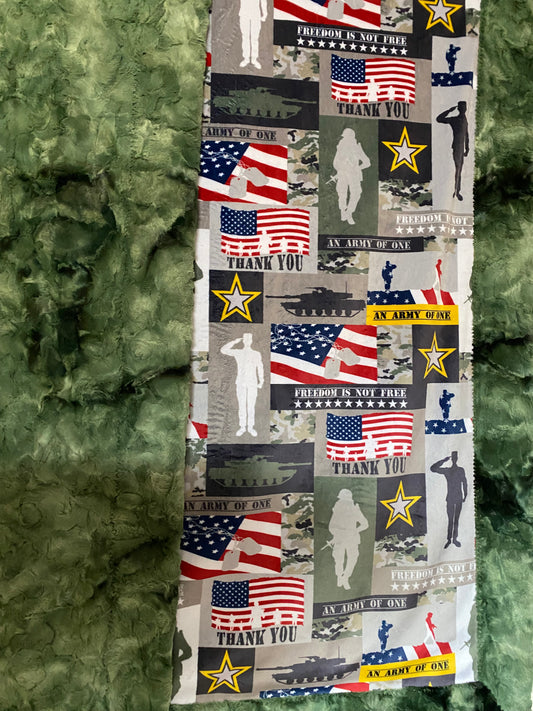 Soldier Army Green on Camo Galaxy Minky Blanket - Adult Large 56x74