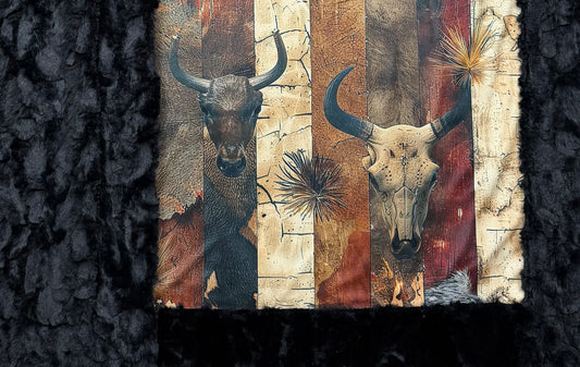 Western Skulls Black Luxe Large 55x79 Minky Blanket