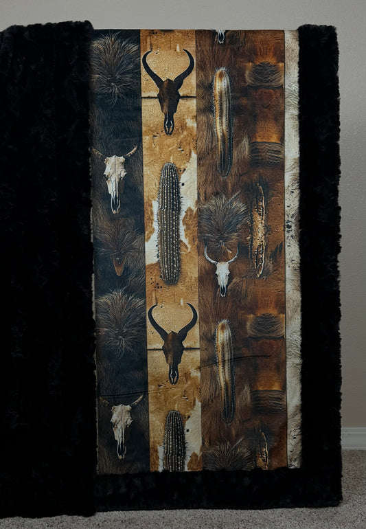 Desert Skulls on Black Luxe Large 55x79 Minky Blanket