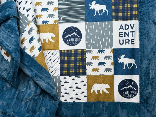 Adventure Patchwork on Poseidon Luxe Large 55x79 Minky Blanket