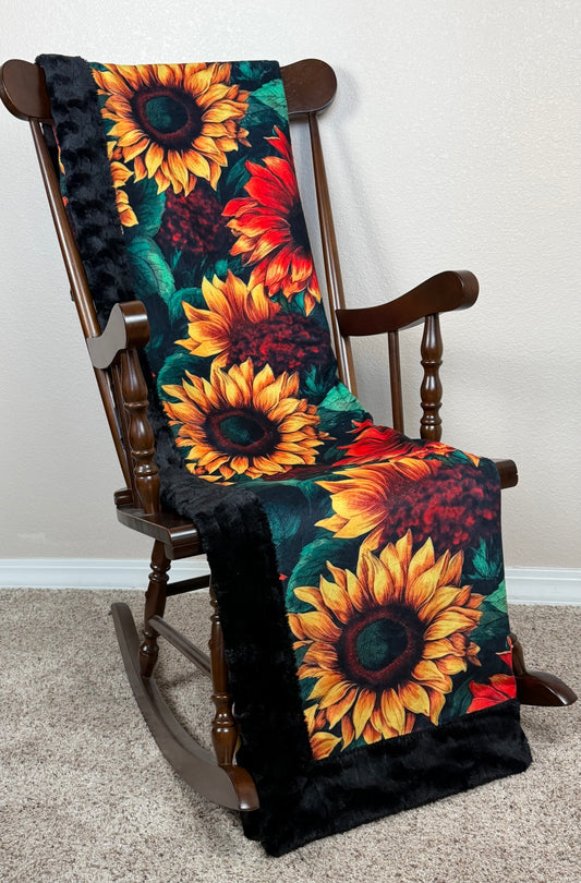 Colorful Sunflowers on Black Luxe Large 55x79 Minky Blanket