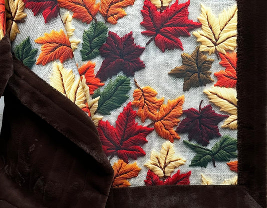 Autumn Leaves on Brown Luxe Large 55x79 Minky Blanket