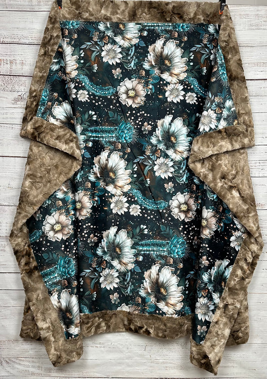 Boho Cow Skull Floral on Pinecone Luxe Large 56x79 Minky Blanket