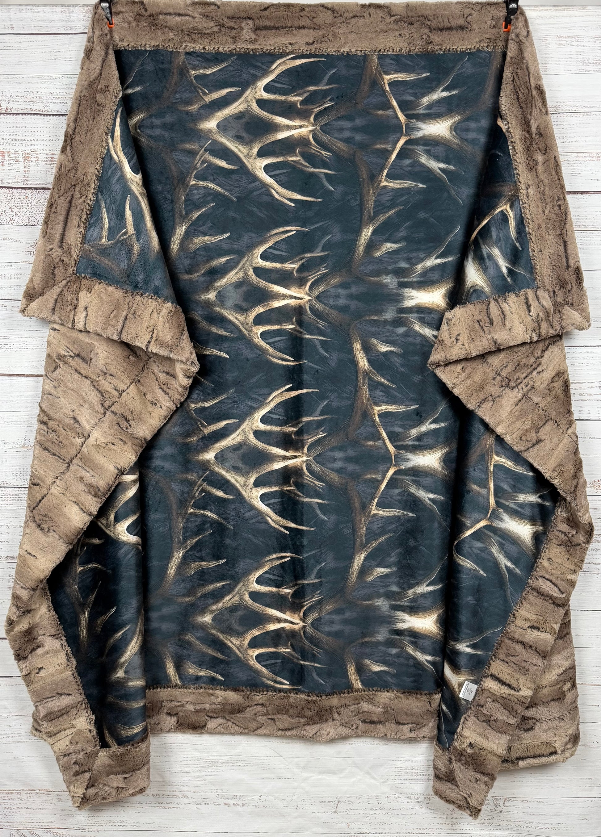 Antlers on Chestnut Luxe Large 55x9 Minky Blanket