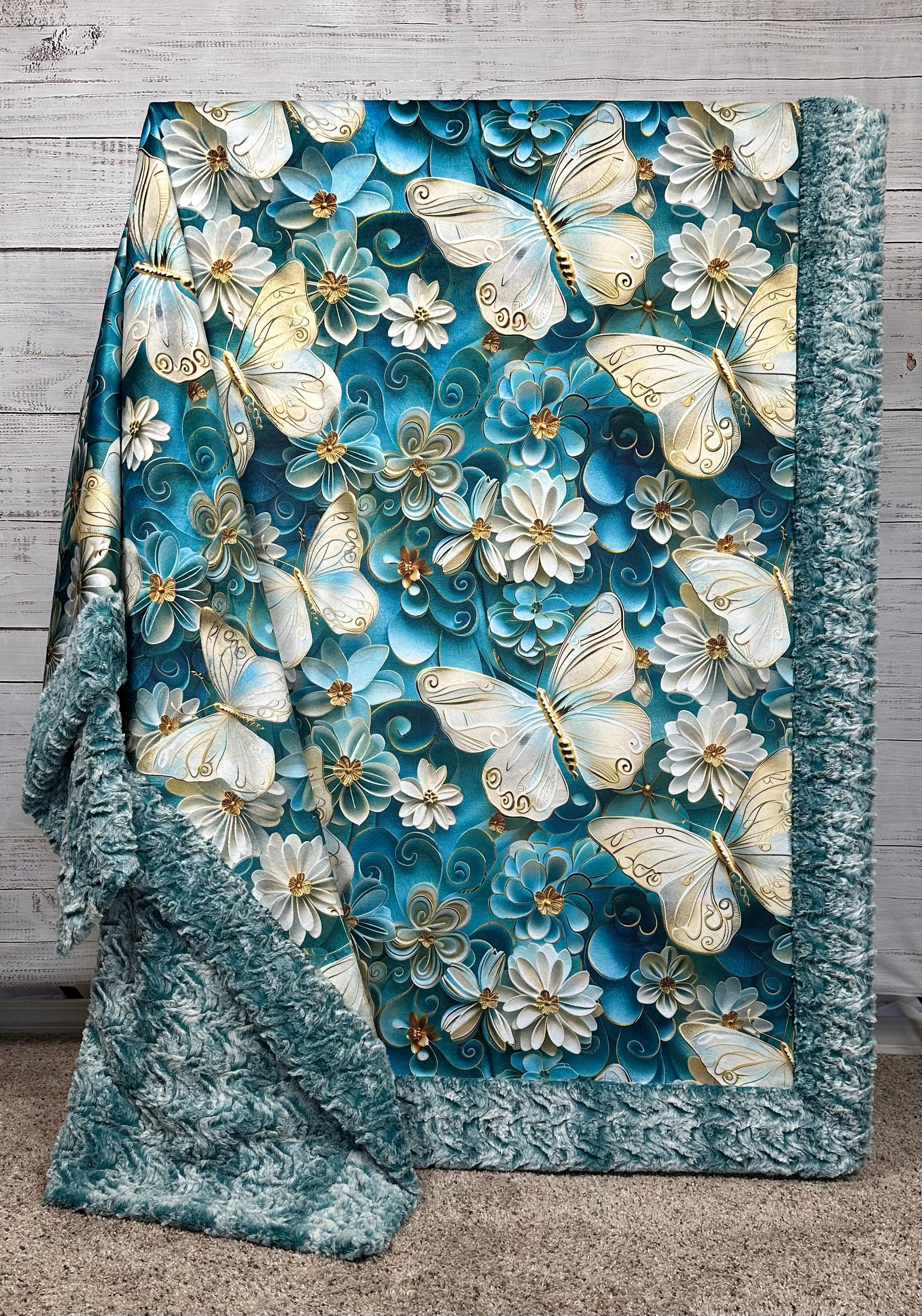 Butterflies on Misty Bayou Luxe Large 55x79 Minky Blanket