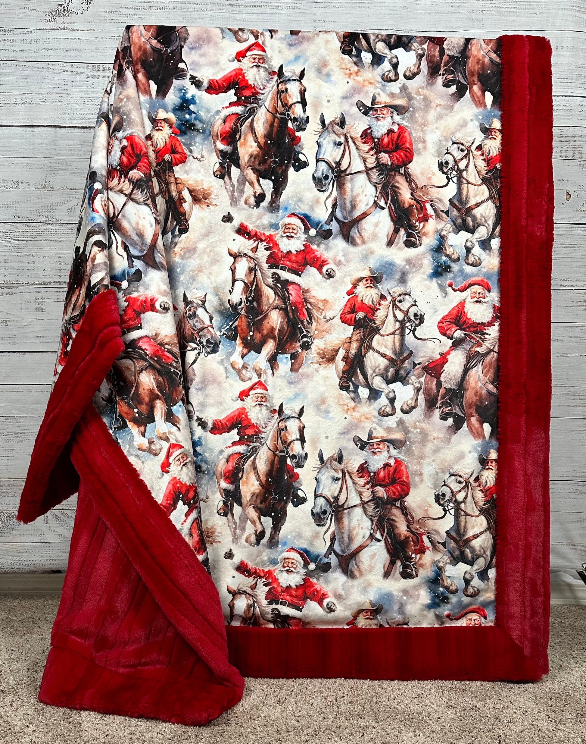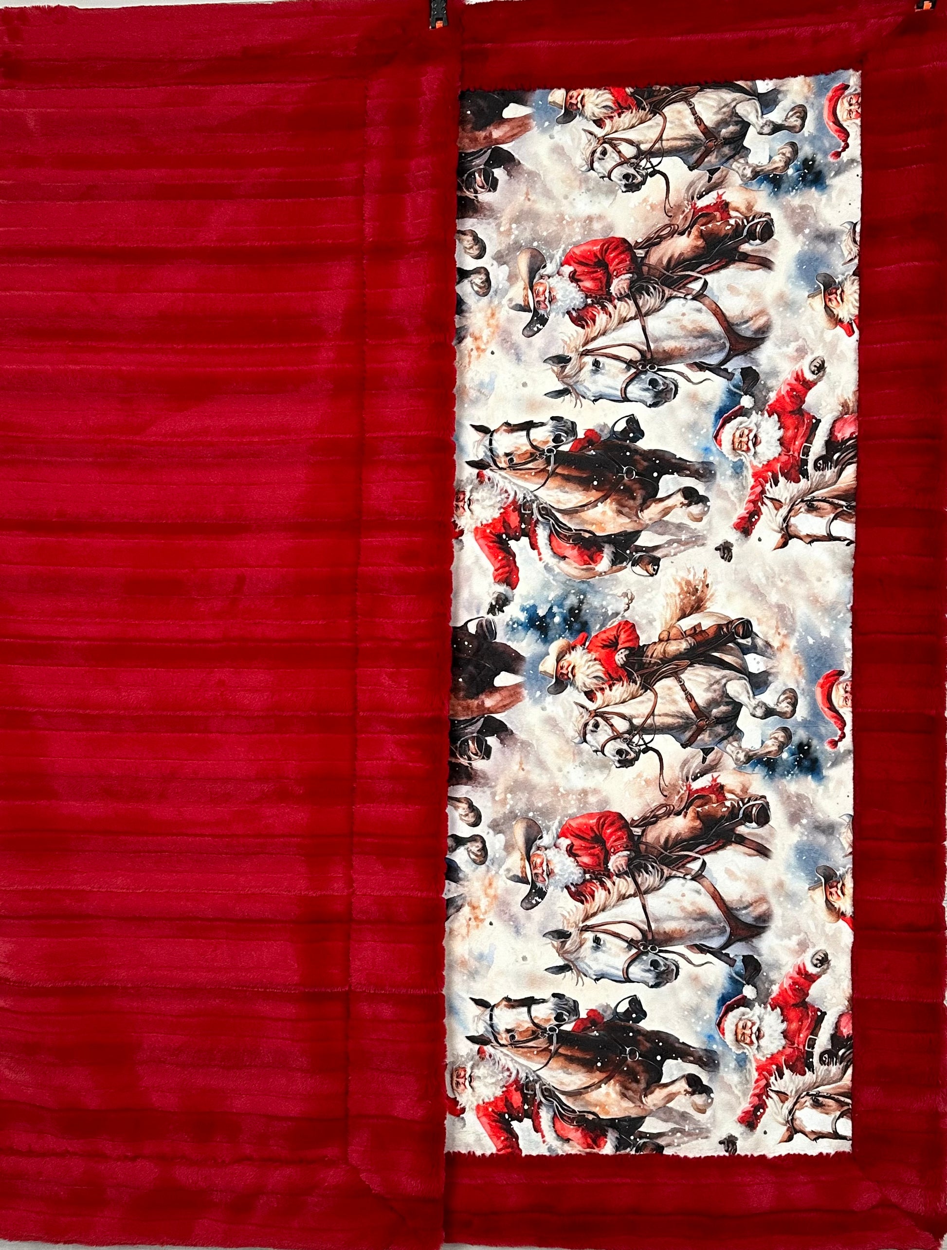 Cowboy Santa on Red Luxe Large 53x78 Minky Blanket
