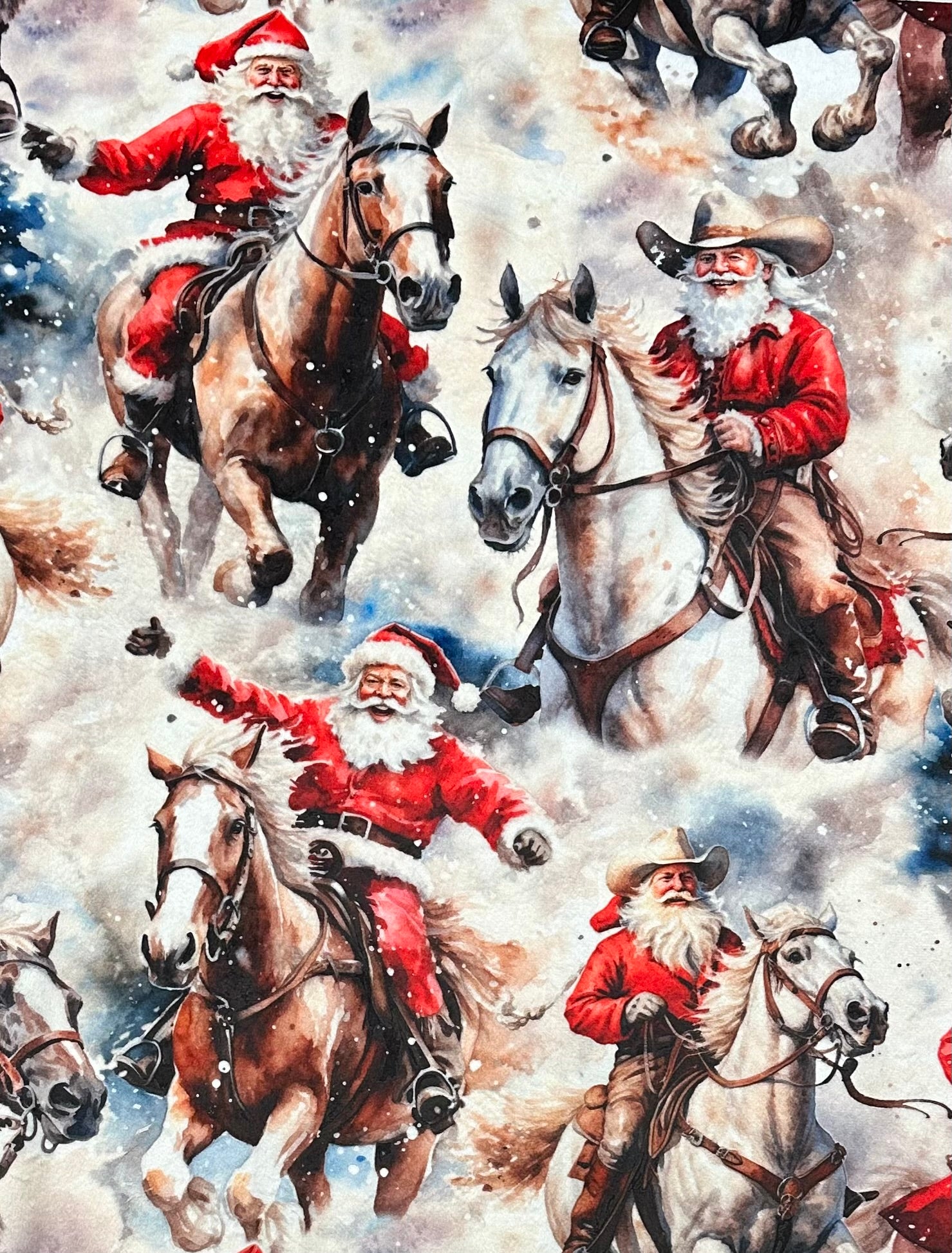 Introducing our luxurious and elegant Christmas Holiday Minky Blanket, perfect for a young child. This handcrafted, soft and cuddly blanket with a Cowboy Santa print on a beautiful plush red backing, adding a festive touch to your home decor. The unique design of the blanket makes it stand out, the minky material used on this blanket is soft and comfortable providing a cozy feel for the recipient, making it a unique and special gift option. This blanket can also be used as a decorative piece in the home