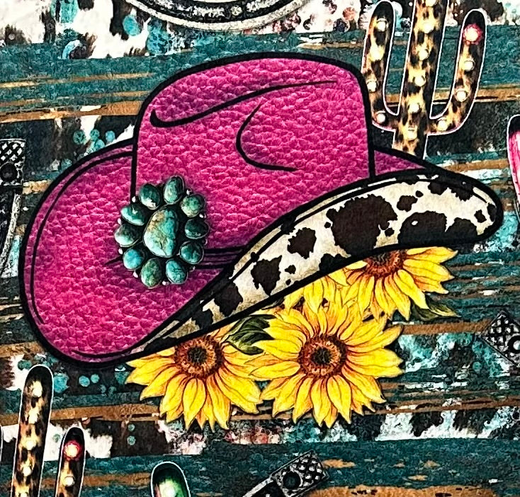 Indulge in the luxurious comfort of our Cowgirl Pink Hat with Sunflower Cowhide on Pony Mudpie Luxe backing Large Minky Blanket measuring 55x79 inches. This handcrafted with love blanket is soft and cozy, perfect for your little cowgirl. The blanket design features a pink hat, adorned wit sunflowers and cowhide, perfect for road trips or snuggled up under the stars. Handmade with care, our blankets are designed to last for years, providing warmth, comfort, and a touch of luxury wherever you go, making it a unique gift option,