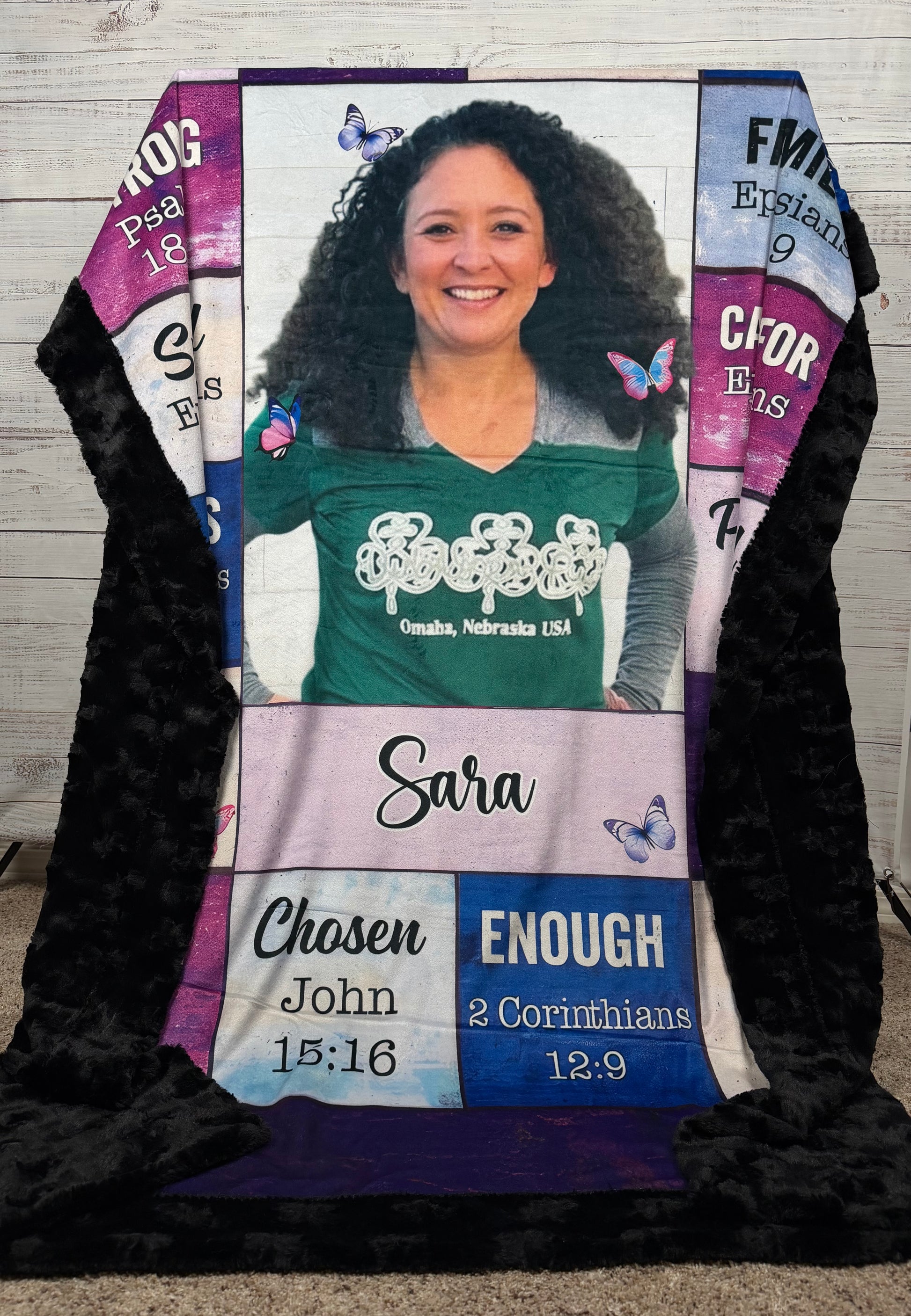 Introducing our new custom personalized minky blanket. Experience pure comfort in luxury with this beautiful, personalized, handcrafted blanket especially made for your loved one, making it a unique gift option.
