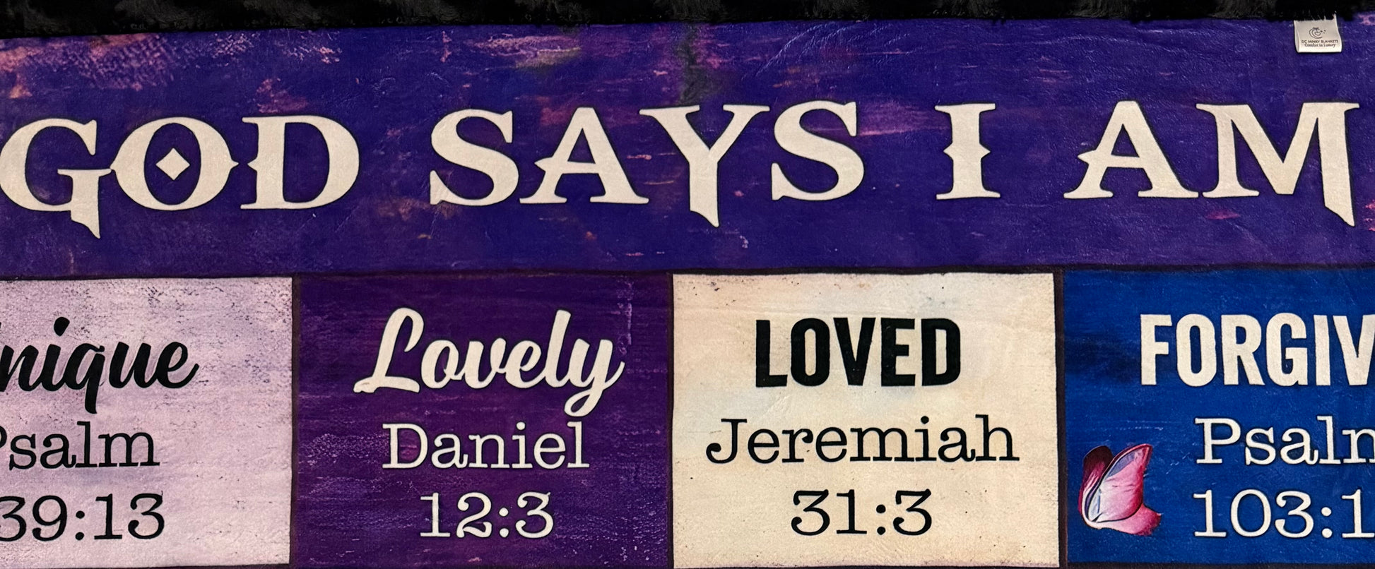 God Says I Am.....on Black Luxe Personalized Custom Large Minky Blanket