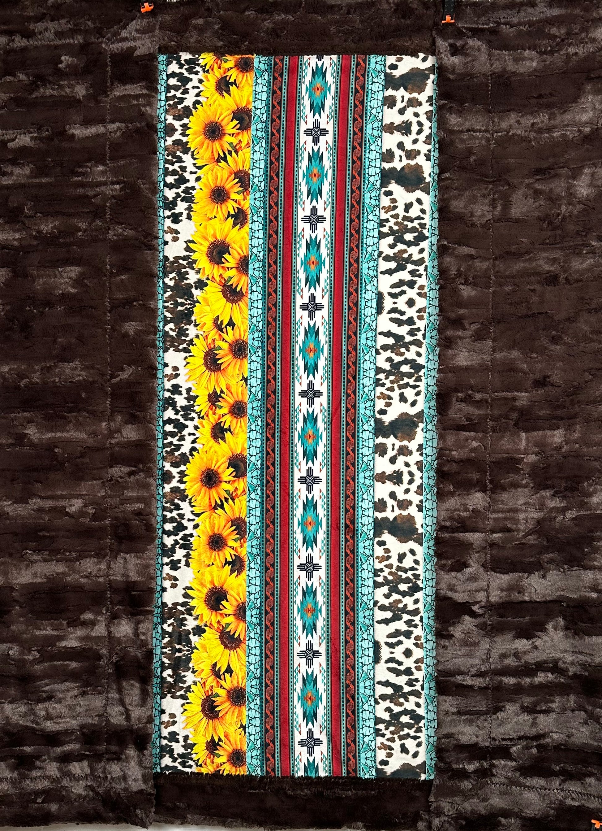 New Mexico Sunflowers on Brown Luxe Large 57x80 Minky Blanket