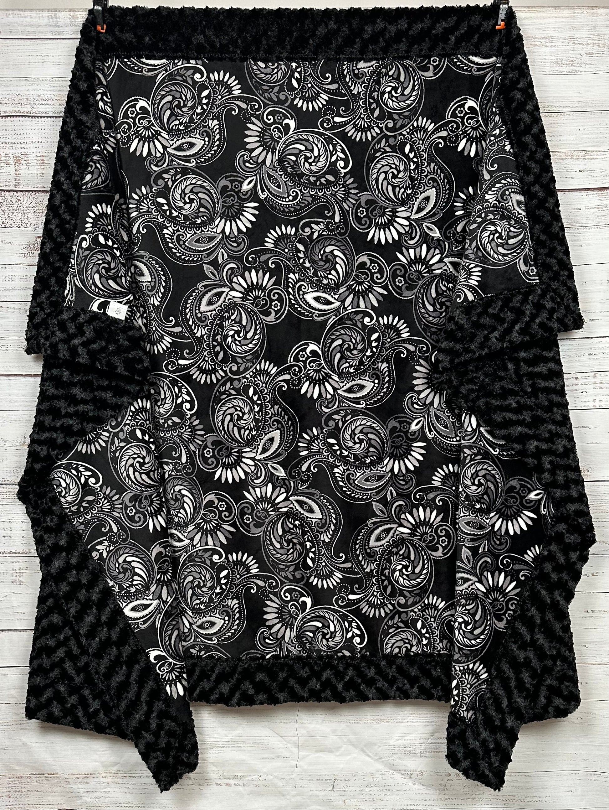 Paisley Black on Black Luxe Large 54x82 Minky Blanket